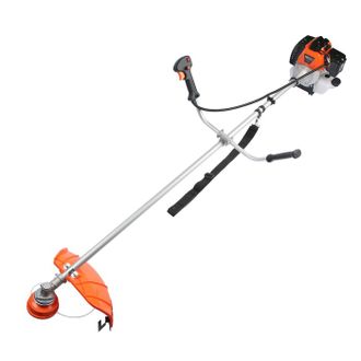 В процессе работы бензиновый мотор развивает скорость вращения шпули (диска) со скоростью до 8500 об/мин. Штанга у данной модели бензотриммера цельная.