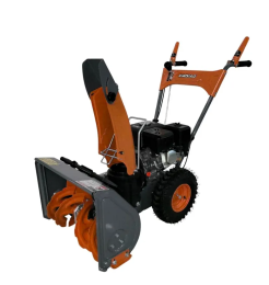 Самоходная модель с мощным 7-сильным двигателем и полноценной коробкой передач (4 скорости вперед + 1 назад) обеспечивает легкое и эффективное управление. Стальной шнек с зубьями без труда разрушает слежавшийся снег, наст и ледяную корку.