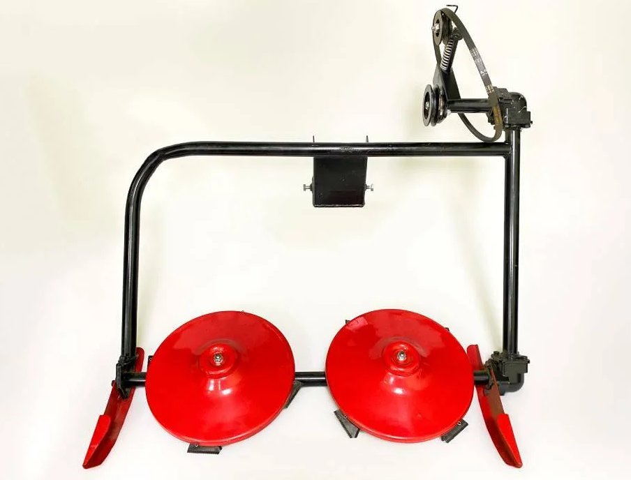 Косилка оснащена ременным приводом от шкива двигателя и поставляется в комплекте со сцепкой, что обеспечивает быстрое и надежное подключение к технике. Скошенная масса укладывается в валок, что значительно упрощает последующий сбор и часто избавляет от необходимости грабления.