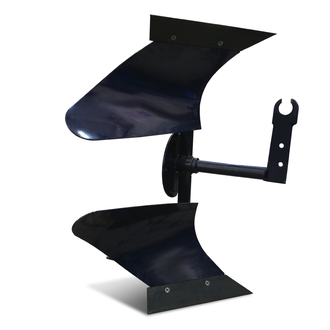Оборотный плуг представляет собой конструкцию с двумя отвалами, расположенными на стойках зеркально относительно оси сцепа. Для фиксации корпуса в определенном положении имеется подпружный фиксатор.