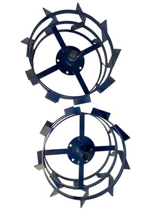 Специальные металлические колеса предназначенные для лучшего сцепления с почвой и обеспечения больших тяговых усилий мотоблока при пахоте, окучивании и выкапывании корнеплодов. Комплект 2шт.