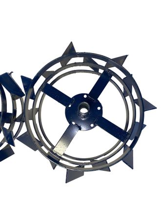 Специальные металлические колеса предназначенные для лучшего сцепления с почвой и обеспечения больших тяговых усилий мотоблока при пахоте, окучивании и выкапывании корнеплодов. Комплект 2шт.